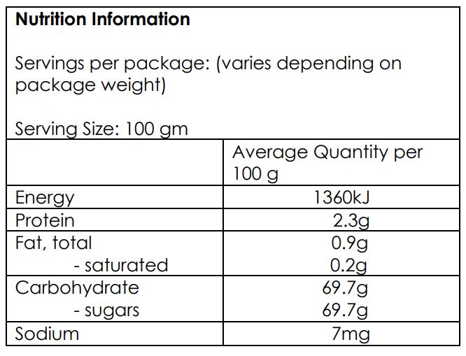 Ingredients: Pineapple, Cane Sugar, Citric Acid, Sulphite (E220)